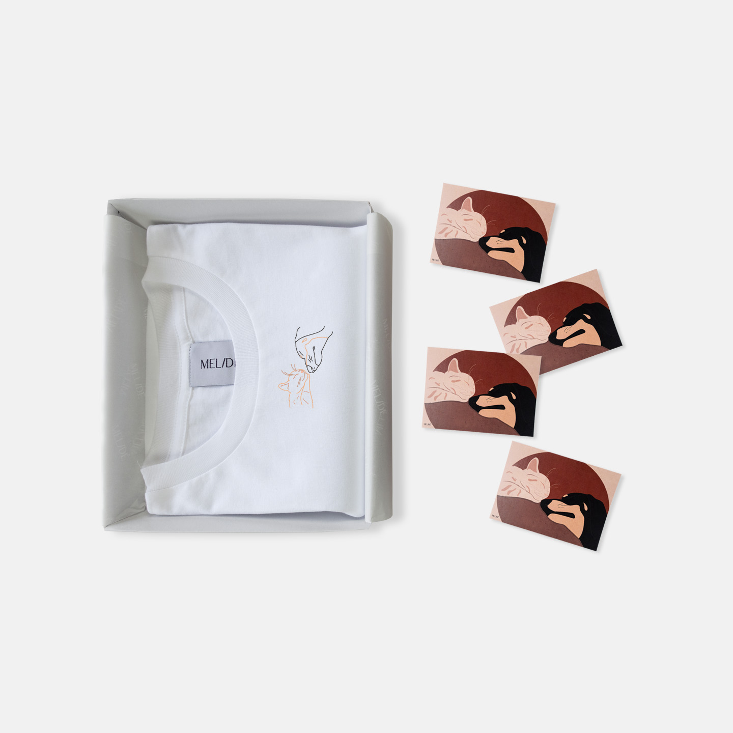 Possiamo realizzare per te un'illustrazione personalizzata che ritrae uno o più soggetti. E se cerchi qualcosa di più unico che mai puoi acquistare la combo con t-shirt + illustrazione personalizzata. Le illustrazioni sono disponibili in formato A4 o in set di quattro cartoline A6, tutto rigorosamente stampato su carta di qualità riciclata e certificata.